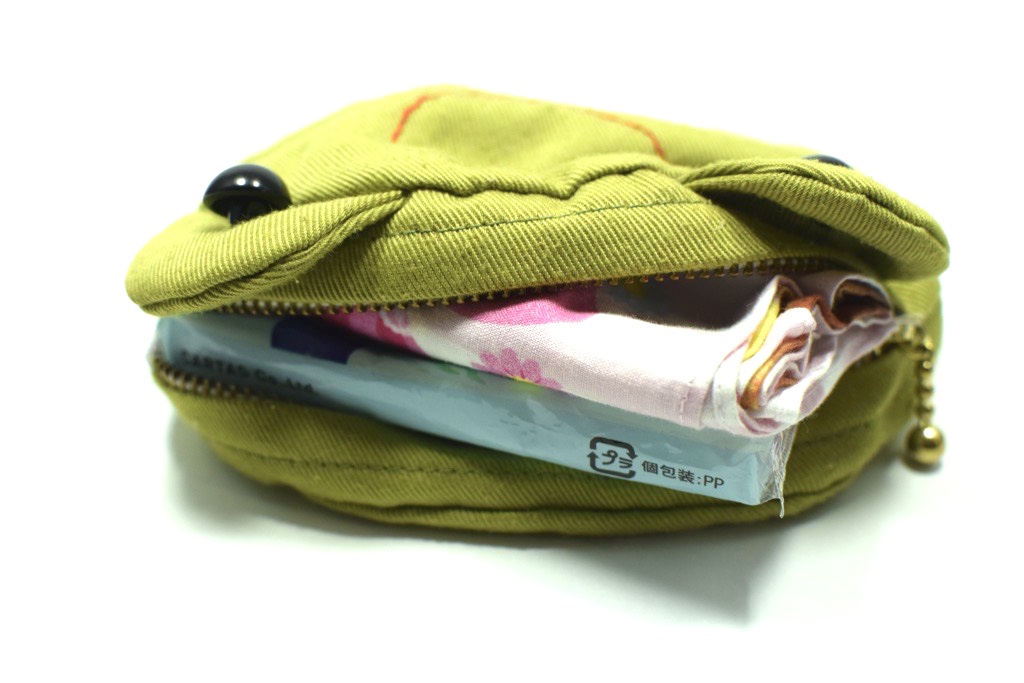 パンパンにいれると中身が落ちやすくなるといいましたが、うちの子の場合はハンカチをうまくたためなくてかさばって落としちゃうということもありました。その点を改善するためにチャック式にしました。